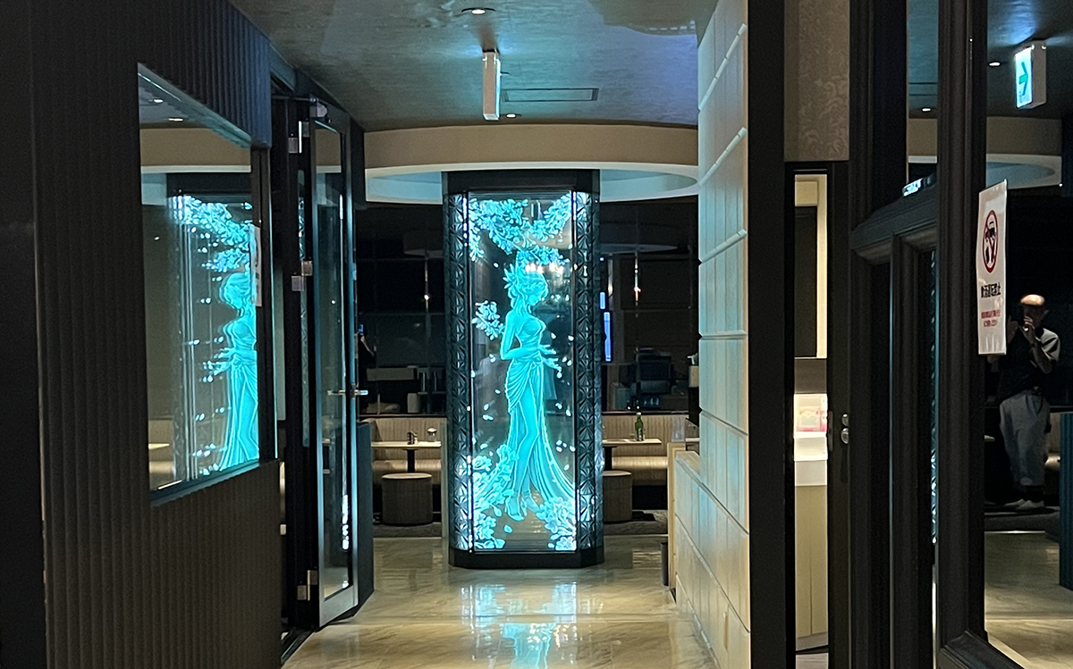 飲食店舗のエッチングガラスオブジェの設置